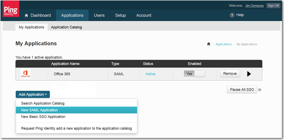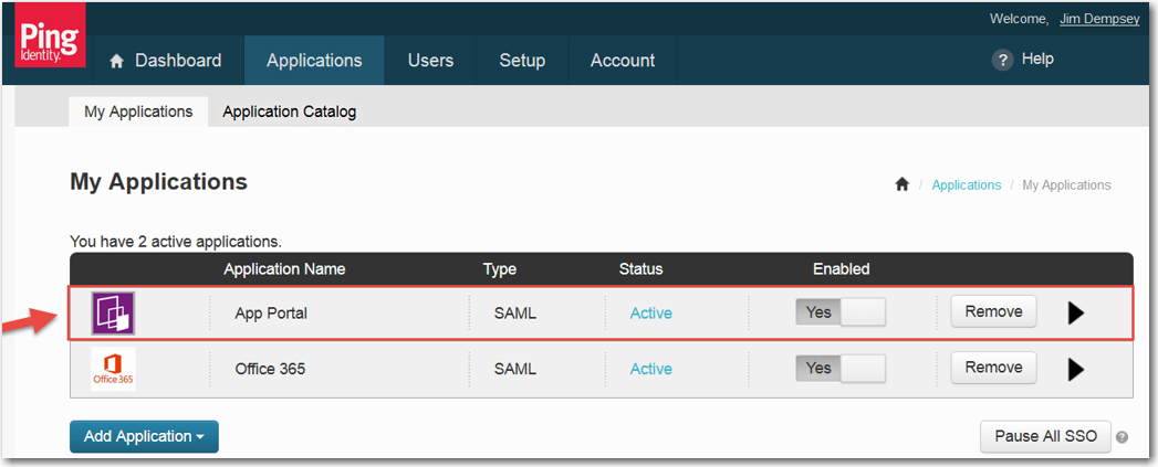 Log into Ping Identity as an admin and open the My Applications tab on the Applications menu.