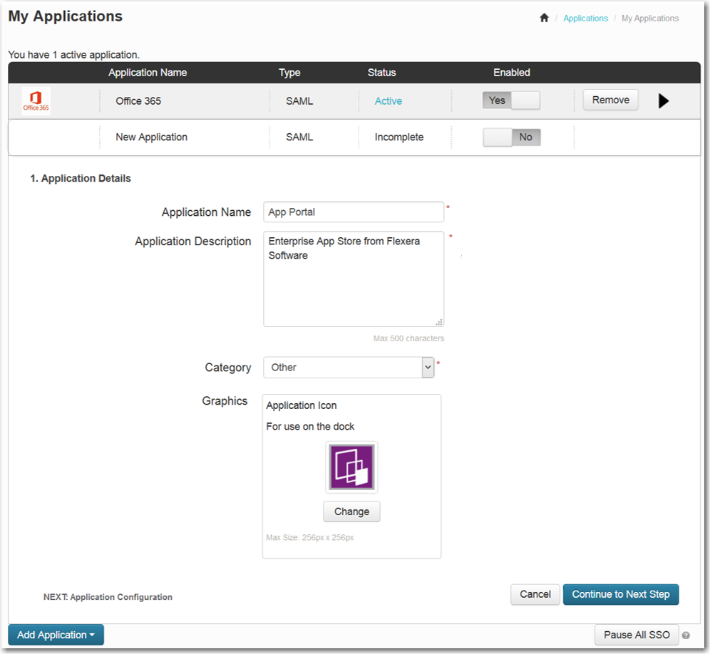 Click Change and upload an Application Icon, which will be displayed in the SSO dock.
