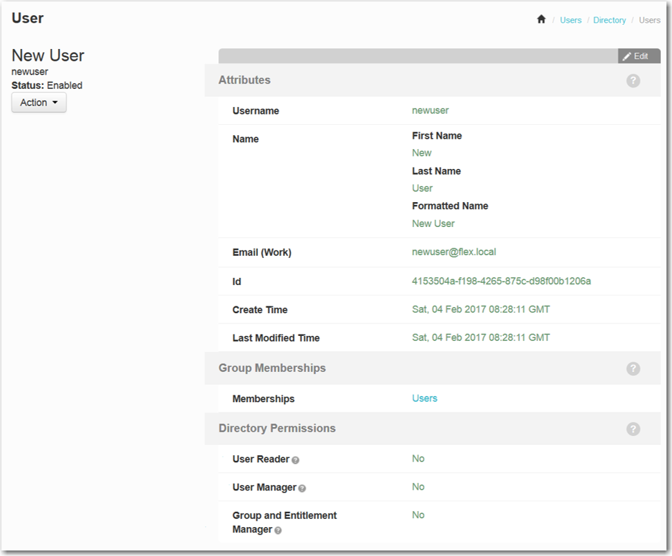 Log into Ping Identity as an admin and open the User Directory > Users tab on the Users menu. The Users view opens.
