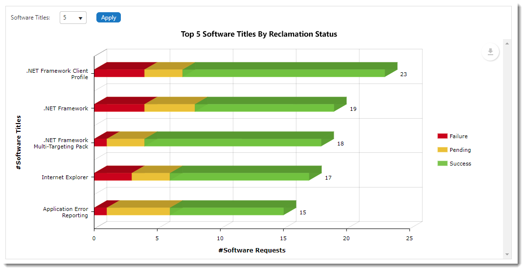 The number of titles displayed in the graph is based upon the number selected in the Software Titles drop-down. Selectable values are 5, 10, 25, 50, 100. The default is 5.
