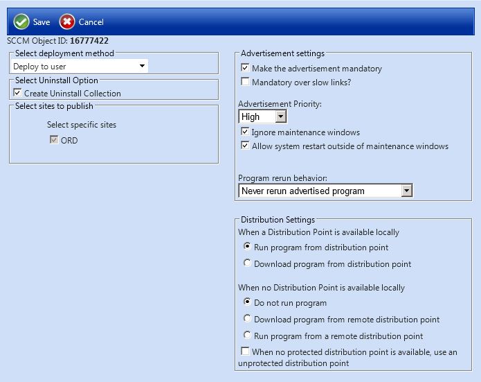 | Mandatory over slow links? | Select this option to require that the installation is run even when a client has a slow connection. If this option is not selected, the SCCM client agent will not perform the installation if the client has a slow connection, but will perform the installation if the client is connected over a regular LAN connection. |